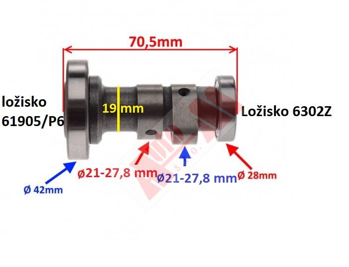 vačková hřídel, pro 4T motory pitbuke, cross , minibike